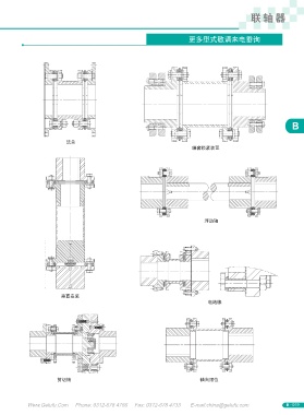 联 轴 器 更多型式敬请来电垂询 B 法兰 轴套锁紧装置 浮动轴 垂直安装 电绝缘 剪切销 轴向限位 Www.Gelufu.Com Phone: 0312-678 4766 Fax: 0312-678 4733 E-mail:china@gelufu.com B - 019